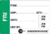 Daydots, a world leader in food safety solutions specializes in products that keep your customers and employees safe from food born illnesses and the prevention of accidents. Keep foods fresh and prevent spoilage by using Daydots Day of the Week Labels in the refrigerator or freezer that encourages food rotation. Place warning signs in the back of the house where slips and falls are most likely to occur and posters to support good personal hygiene habits. Equip your food service establishment with products that are designed to save you time and money.Features:-Dissolvable - Friday Prep Label- 2in x 3in labels|food labels|label|kitchen label| 2" X 3" Dissolvable Prep (E/S/F) Fri| Food Safety Solutions - food rotation labels| portion bags| color-coded systems| gloves| thermometers| hygiene| cleaning| and training| Labeling and Rotation| Prep and Handling| Temperature Control| Training and Auditing| Personal Hygiene| Emergency Response| Protective Apparel| Material Handling| Organization| Sanitation and Cleaning| Workplace Maintenance| Daydots Dissolvable Label| 2 in.x3 in.| Friday 10206-05-31 Home