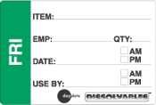 Daydots, a world leader in food safety solutions specializes in products that keep your customers and employees safe from food born illnesses and the prevention of mishaps. Keep foods fresh and prevent spoilage by using Daydots Day of the Week Labels in the refrigerator or freezer that promotes food rotation. Place warning signs in the back of the house where slips and falls are most likely to occur and posters to support good personal hygiene habits. Stock your food service establishment with products that are designed to save you time and money.Features:-Dissolvable - Prep Friday- 2in x 3in measurement 2" X 3" Dissolvable Prep (E) Fri| Food Safety Solutions - food rotation labels| portion bags| color-coded systems| gloves| thermometers| hygiene| cleaning| and training| Labeling and Rotation| Prep and Handling| Temperature Control| Training and Auditing| Personal Hygiene| Emergency Response| Protective Apparel| Material Handling| Organization| Sanitation and Cleaning| Workplace Maintenance| Food Safety Solutions - food rotation labels| portion bags| color-coded systems| gloves| thermometers| hygiene| cleaning| and training (via CobWeb/3.1 planetlab2.cs.columbia.edu) Home